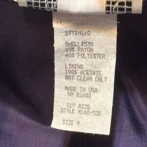 Material: Shell 60% rayon, 40% polyester. Lining 100% acetate.