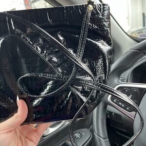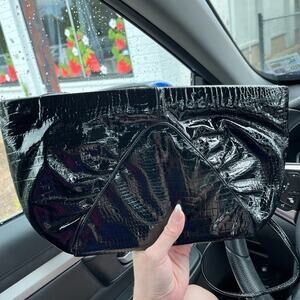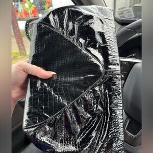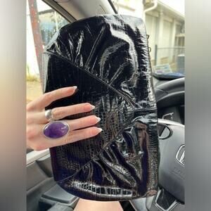 Vintage 80s LARGE Black Vinyl Textured Crocodile Print Evening Bag by Brio 11