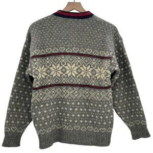 Vintage 80s L.L. Bean Wool Sweater Button Front Cardigan Fair Isle Gray USA | M