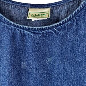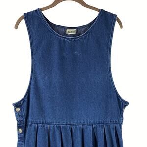 Vintage 80's L.L.Bean Denim Midi Dress Pinafore Size 10/12 Petite 100% Cotton