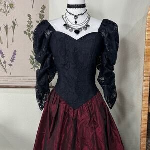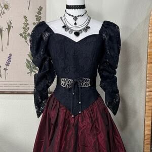 Vintage 80s Lace Bodice Party Dress Vampire Romantic Goth Whimsigoth Victorian S