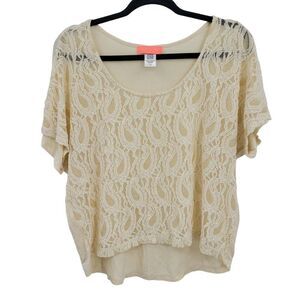 Vintage 80s Lace L Ivory See Through Front Stretch High-low Jersey Knit Back