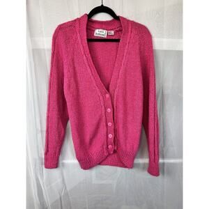 Vintage 80s Laura Katherine hot pink textured button down cardigan