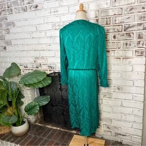 Vintage 80s Lauren Alexander Petites Plunge Silk Green Wrap Midi Dress 12