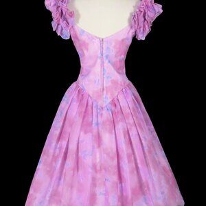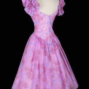 Vintage 80s Lavender Purple Pink Floral Chiffon Ruffle HoCo Prom Party Dress S M