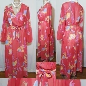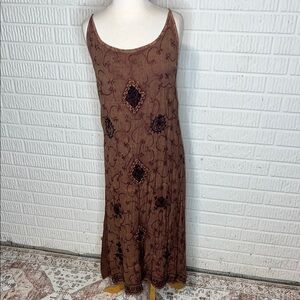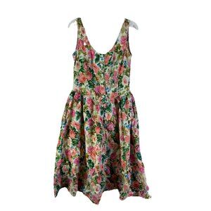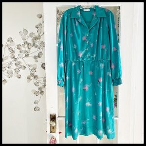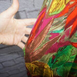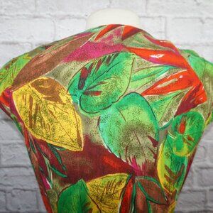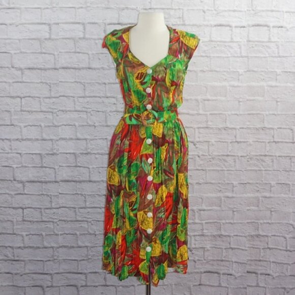 Vintage 80s Leaf Button Down Belted Midi Dress Medium