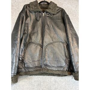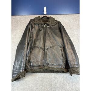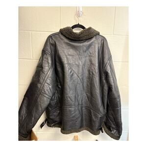 Vintage 80s Leather Aviator Leather Bomber Jacket Mens 4XL Black Sherpa Lined