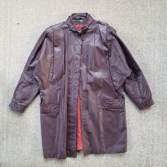 Vintage 80s Leather Coat Berman's Women's 14 Maroon Oxblood