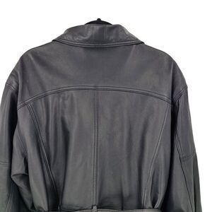 Vintage 80s Leather Flight Jacket M Black Long Belted Hidden Zip Biker Moto