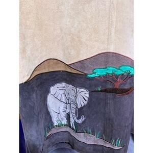 Vintage 80s Leather Jacket Sz S Tan Western Safari Whimsical Animal Patchwork