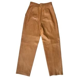 Vintage 80’s Leather Pleated Trousers Womens 8 Tan Betty Hanson Tapered Hi Rise