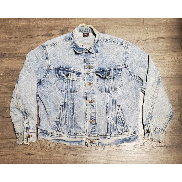 Vintage 80s Lee Blue Denim Georgia Hot Rod Trucker Jean Jacket Mens Medium M