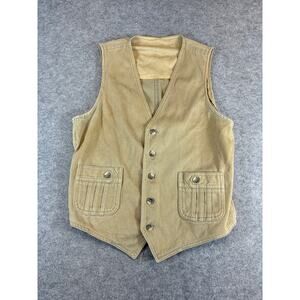 Vintage 80s Lee Utility Cargo Button Up Vest Mens 38 Tan Work Outdoor Fishing