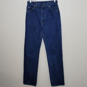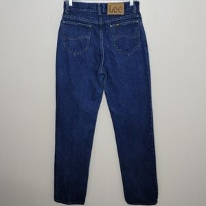 Vintage 80s Lee Women's Size 11 Mom Jeans Blue 100% Cotton Denim 28x34 Made In USA High Rise Waist Dark Wash. No Pet/Smoke Odors Or Any Issues Great Shape!. 28" Waist 34" Inseam. Condition Is "Pre-Owned".