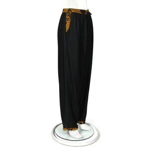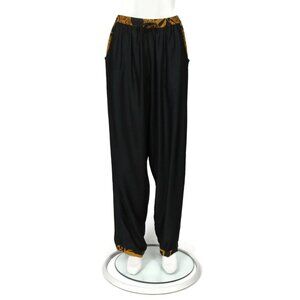 Pants: Overall length 42". Inseam 30.5". Rise 15.5". Waist laid flat 13" has elastic waist band. Top: 36" length. Underarm 29". Sleeve 22" to shoulder area. Sleeve 16" to seam. Material: rayon. No holes, tears, stains. Note the color shifts depending on lighting, flash, computer screens, photos are only an approximation of actual color not an exact description.