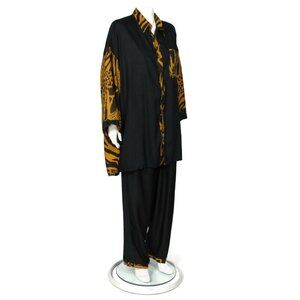 Vintage 80s Leopard Multi-print Oversize Blouse Pants White Lotus Ok Mike OS 206
