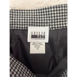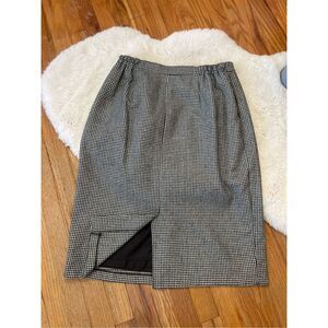 Vintage 80s Leslie Fay Wool Blend Houndstooth Black/white Midi Skirt
