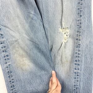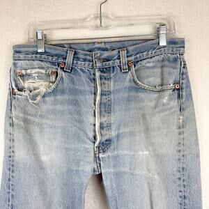 Vintage 80's Levi's 501 Button Fly Light Wash Heavy Distress Rigid Size 34x33