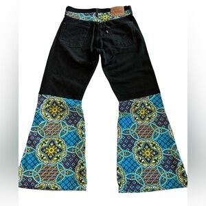 These appear to be customized Levi’s Black 501 flare legs. So cute but just to small for me.