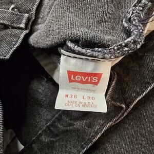 Vintage, 80s, Levi's 505 jeans men's tag size 36x30 in black. There's some fraying in the crotch and a dark spot on the right leg. See pics. 3117