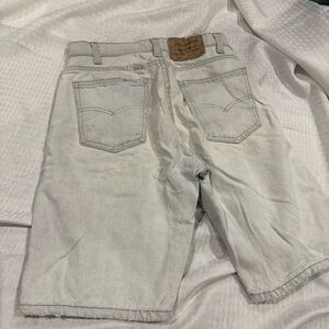 Perfectly distressed trashed vintage 80s orange tab 550 size 30 jort shorts inseam 11 inches light wash