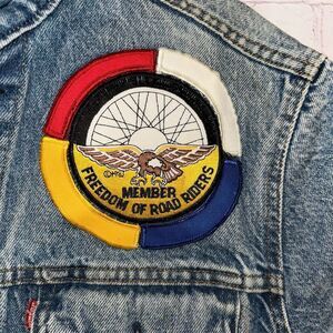 Vintage 80s Levi's Men's Harley Davidson Denim Motorcycle Jacket L with Patches