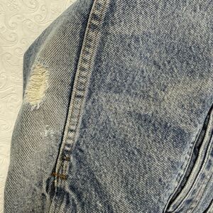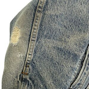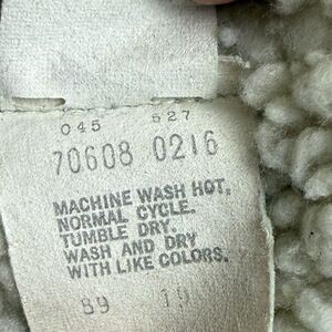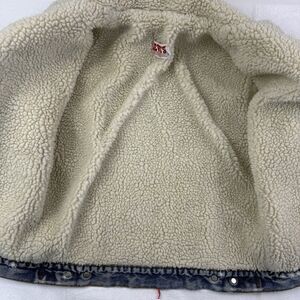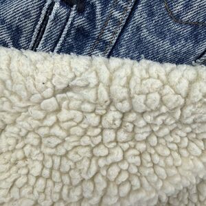 TONS of wear all over this vintage 80's trucker, Sherpa lined jean jacket.