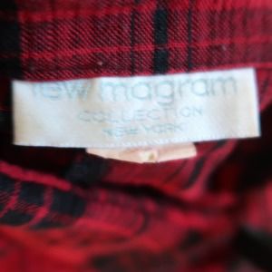 Vintage 80s Lew Magram red and black plaid midi shirt dress 14
