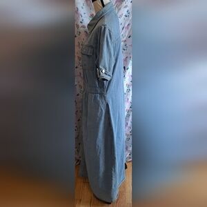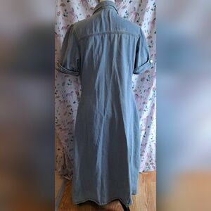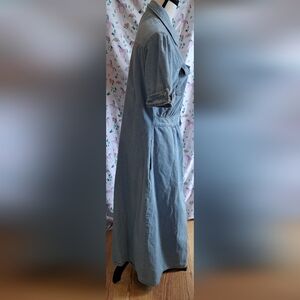 Vintage 80s Light Denim Button Up Preppy Classic Collar Maxi Dress Skirt SZ L