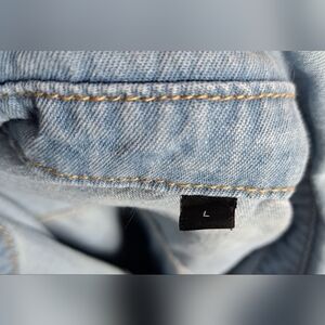 In beautiful condition. Sleeves have dual snaps. Collared and ruffle sleeves. Silver tone hardware. Pockets on chest and on sides. Would look fabulous with a great statement belt.