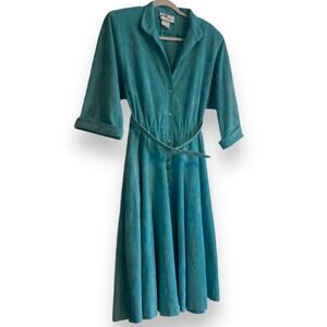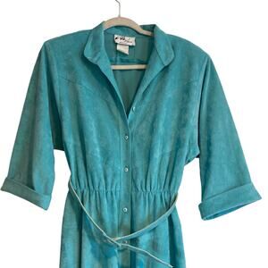 Vintage 80s Light Turquoise Faux Suede Midi Belt Bold Feminine Dress Size Medium