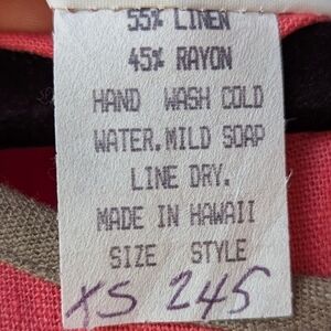 Vintage 80s Linda G Honolulu Hawaiian Coral Tan Linen Blend Maxi Dress XS