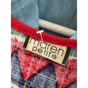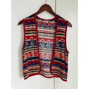 Vintage 80s Linen Graphic Print Vest Size Small Red Blue Green Ethnic print