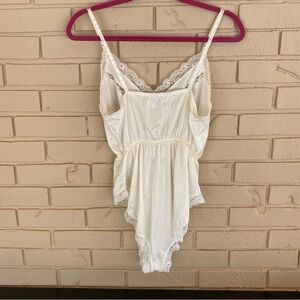 Vintage 80s Lingerie Teddy Bodysuit Ivory Bride Lace Pin Up Adjustable Medium M