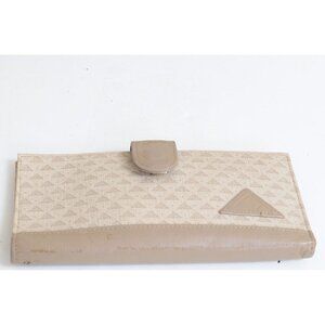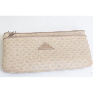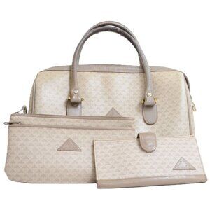 This is a vintage Liz Claiborne monogrammed handbag set, from the 1980s, featuring a larger satchel-style bag, a clutch, and a wallet, all with the brand's signature triangle logo pattern.