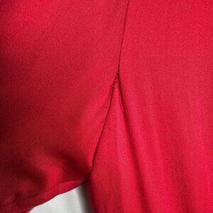 Keywords: Liz Claiborne, vintage dress, red dress, career wear, peplum dress, button front, rayon dress, made in Korea, petites size, long sleeve dress, 1980s fashion, women's clothing, classic style, vintage peplum dress, vintage career dress