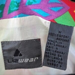 Vintage 80s Liz Wear Statement Floral Rayon Vest Pockets Medium