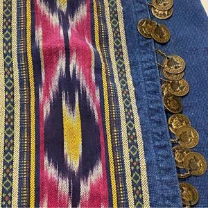 Vintage 80's Lizwear Denim Wrap Skirt With Charms & Aztec Print Women's Size 12