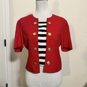 Vintage 80s Lois Snyder Dani Max Red and gold button faux blazer sailor Top 6