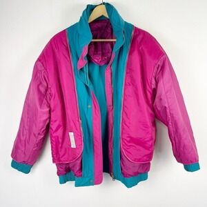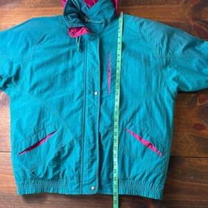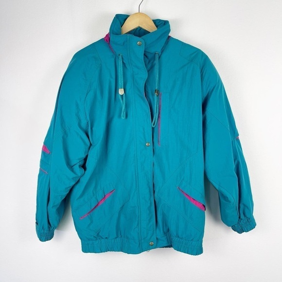 Vintage 80s London Towne Teal Pink Windbreaker Ski Jacket Lining Women's Medium