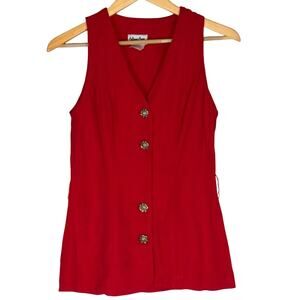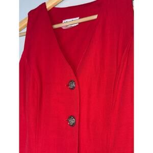 Vintage 80s Longline Cherry Red Button Up Vest Womens Small Gold Buttons Belted