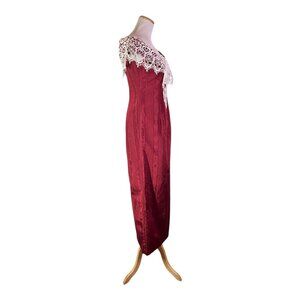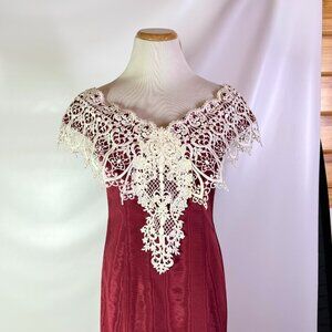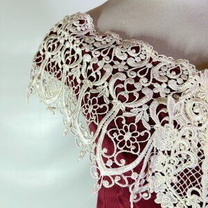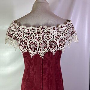 Vintage 80s Loralie Size 8 Red Off-the-Shoulder Dress Lace Victorian Look
