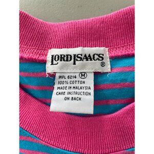 Vintage 80s Lord Isaacs Striped Tank Top Medium Pink Blue Cotton Deadstock NEW