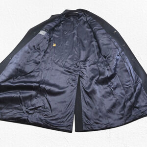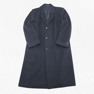 Vintage 80s Lord & Taylor Kensington Dark Navy Wool Cashmere Overcoat Size 44R