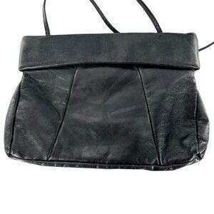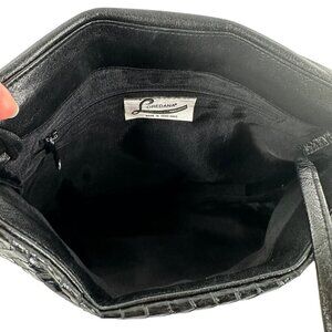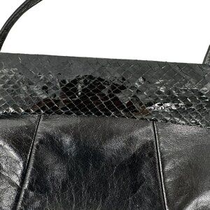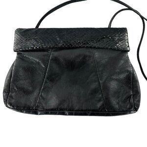 Vintage 80's Loredana Black Leather & Snakeskin Shoulder Bag Crossbody Handbag