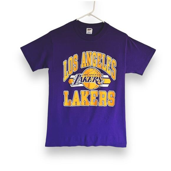 Vintage 80s Los Angeles LA Lakers Purple T-Shirt Single Stitch 50/50 Size M