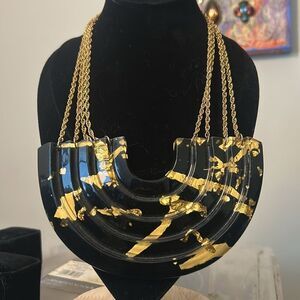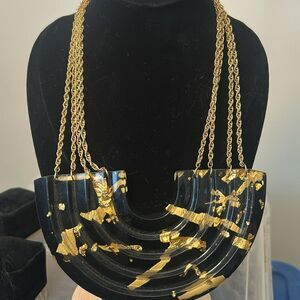 Vintage 80's Lucite Black and Gold Statement Necklace