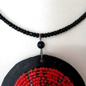 Vintage 80s Maasai Collar Necklace Leather Seed Beads Handmade