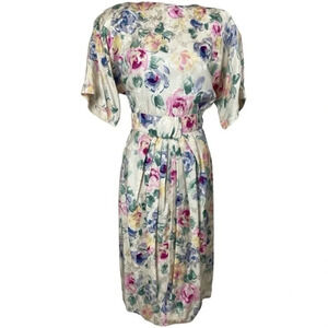 Vintage 80s Maggie London by Jeannene Booher Floral Silk Midi Dress