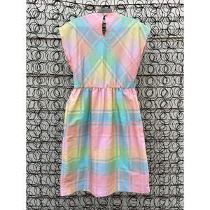 Vintage 80s Malouf Petite Bright Pastel Madras Plaid Dress with Pockets